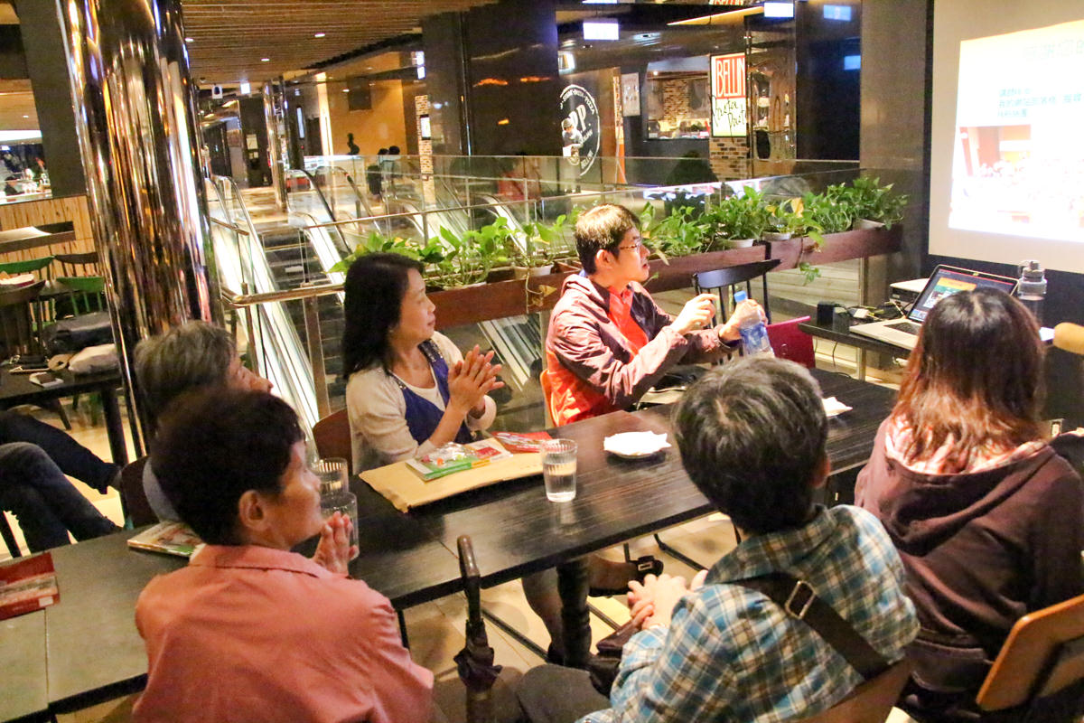 能在餐廳廣場前開講也是非常難得的經驗,現場很多人都在找尋傳單海報的照片上的人到底是誰?