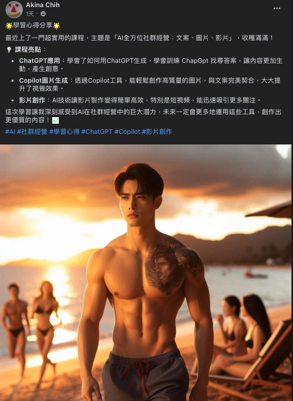 AI課程推薦AI全方位社群經營文案圖片影片一次搞定!AI高效自媒體經營網路行銷應用課-企業團體教育訓練包班全天場(已額滿)