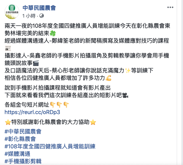 【手機拍片/直播短影音快製力】中華民國農會 全國四健推廣人員增能訓練 講師:吳鑫